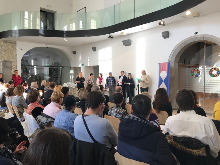 Ljubljana, 11. december 2018 – Javna agencija za knjigo Republike Slovenije s pomočjo sredstev Evropskega socialnega sklada že tretje leto izvaja projekt »Vključujemo in aktiviramo!«. Namenjen je razvoju in izvajanju interdisciplinarnih programov socialne aktivacije in vključevanju ranljivih družbenih skupin v družbo in posledično na trg dela s poudarkom na kulturni komponenti in ustvarjalnosti. V tretjem letu izvajanja projekta so uspeli število vključenih skupin podvojiti, tako da usposabljanje poteka v kar 15 skupinah po vsej Sloveniji, vanj pa je vključenih več kot 100 udeležencev. Ob zaključku leta pripravljajo več zaključnih prireditev, posebne prireditve, ki je potekala danes v Mestnem muzeju v Ljubljani, se je udeležila tudi direktorica organa upravlja za evropske strukturne sklade in Kohezijski sklad v Službi Vlade RS za razvoj in evropsko kohezijsko politiko Mateja Mahkovec.
