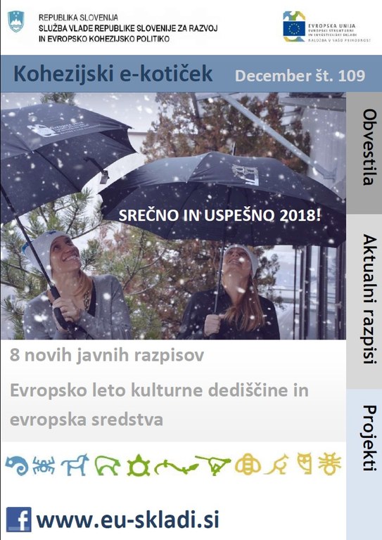 Izšla je decembrska številka Kohezijskega e-kotička, kjer boste našli informacije o projektih, aktualnih razpisih in druge zanimivosti. Prijetno branje!